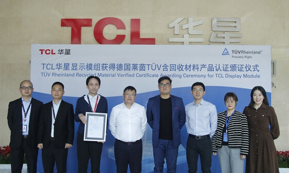 2024年1月4日,德国菜茵TUV大中华区授予TCL华星光电技术有限公司的23.8英寸显示模组“含回收材料产品”认证证书。该显示模组的回收材料含量达到51.5%。
