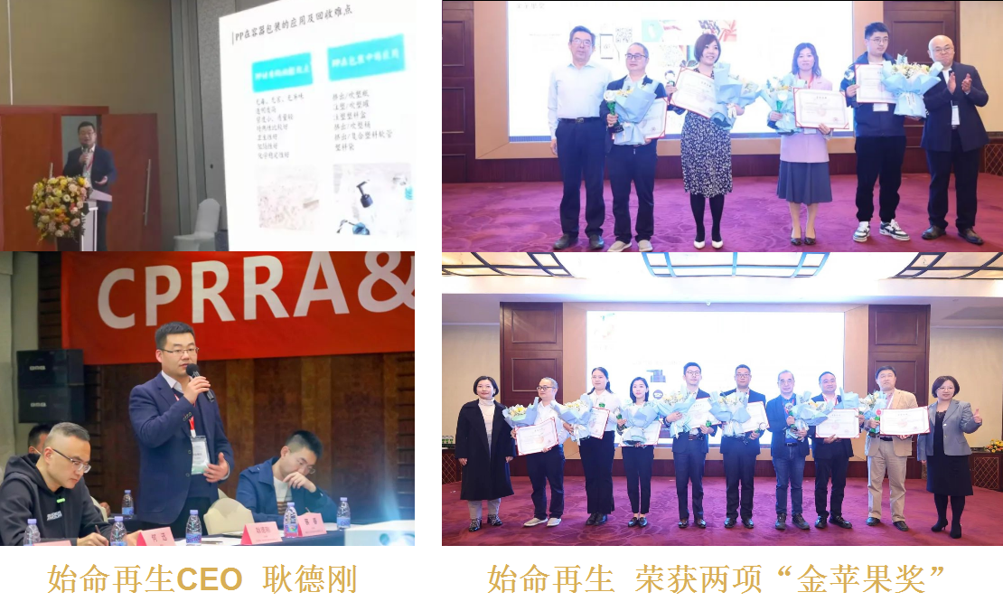 本次大会,“始命再生”荣获两项“金苹果奖”——创新回收模式和再生塑料创新应用。创新回收模式“金苹果奖”的获奖产品是:一种新型PCR-PET回收模式。再生塑料创新应用“金苹果奖”的获奖产品是:一种新型的R-PET应用领域。